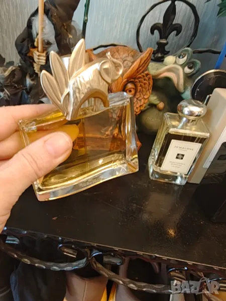 От лична колекция с над 250 парфюма .Оригинален ( без кутия не е купуван за продажба а като резерва ) от него липсват най много 1 мл.Има леко отлющено на слончето от ацетон ( гледайте снимките )Не изпращам отливки и с тест ,който е запознат с тази класика ще го познае и от капачката .НА СЪОБЩЕНИЯ ЗА БАРТЕРИ И ПАЗАРЛЪЦИ НЕ ОТГОВАРЯМ .