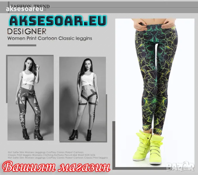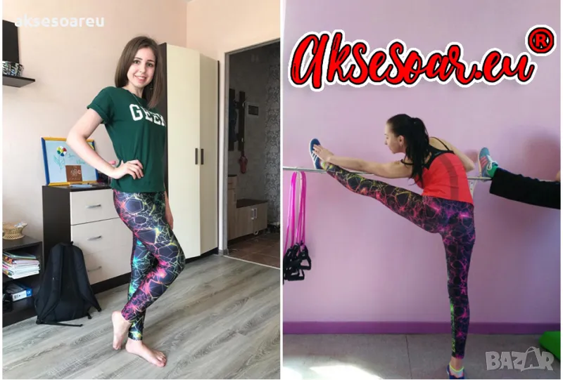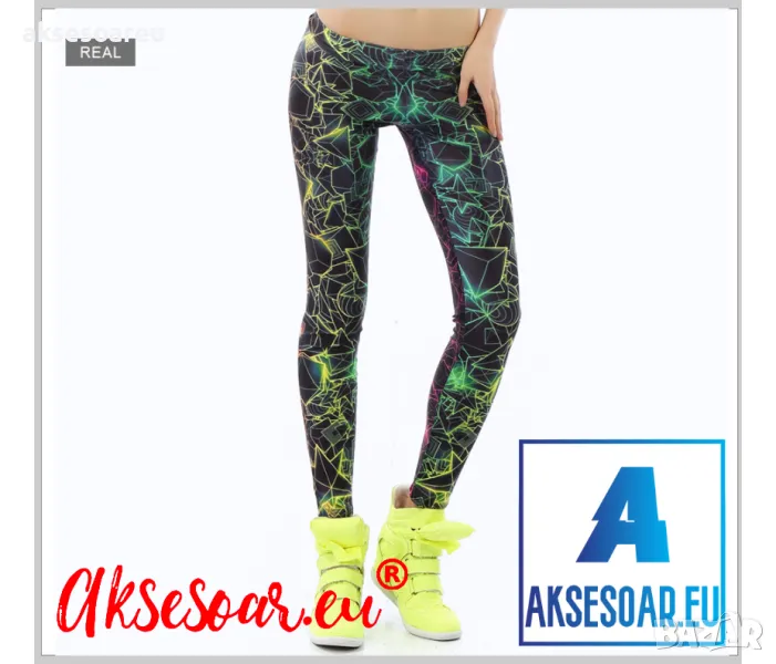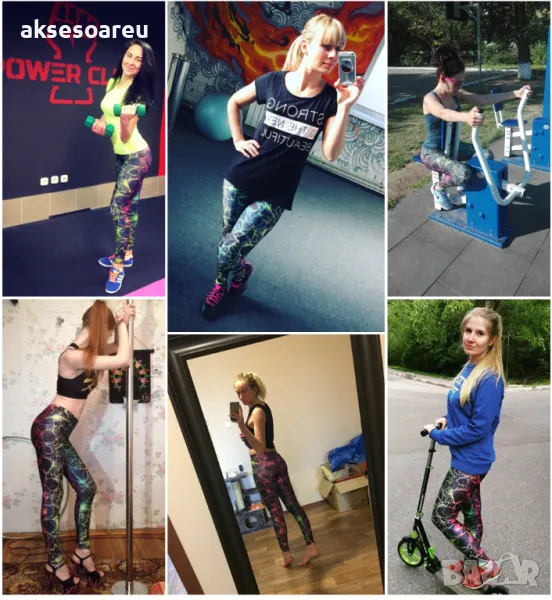 Печатни цветни панталони за спортуващи жени флуоресцентни панталонки за ежедневие