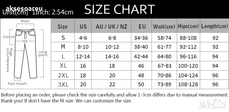 1. Моля стриктно спазвайте таблицата с размерите, за да изберете размера.
