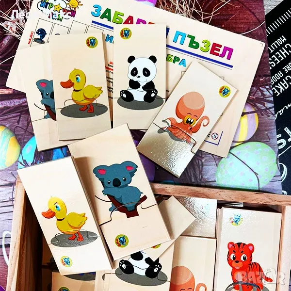 Върху всяка една от съединените вече 30 плочки, ще откриете илюстрация на определено животно. Всяко едно от животните е илюстрирано върху 2 плочки, или казано по друг начин - това са 15 различни двойки животни.