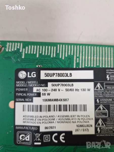 Свалени от работещ телевизор със спукана матрица ТВ LG 50UP78003LB