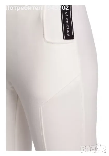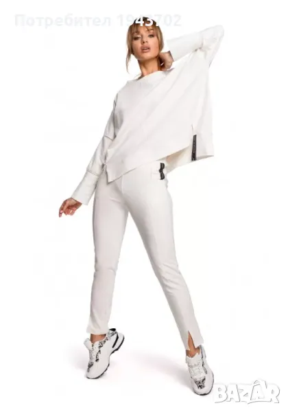 Дамски спортно-елегантен панталон в цвят екрю. Моделът е с прави крачоли и цепки в долната им част. Панталонът е със странични джобове. Еластичен колан на талията.