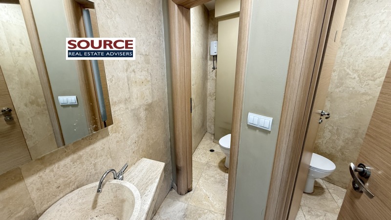 2. Разпределение: 1 голямо Open space помещение, 2 отделни работни помещения преградени със стъклени и гипсокартонени преградни стени, оборудвана кухня с трапезария, рецепция, сървърно помещение, 2 wc, тераса. Офисът може да бъде изцяло с Open space разпределение или допълнително преграден според изискванията на Наемателя.