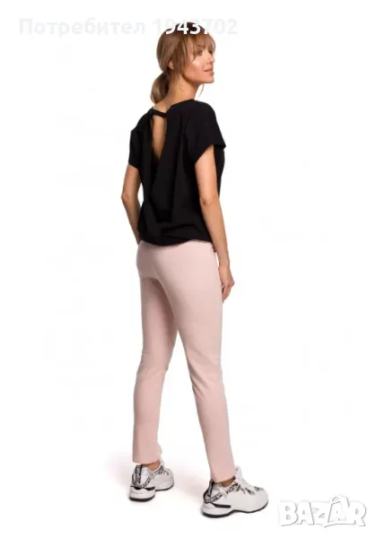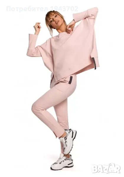 Дамски спортно-елегантен панталон в розов цвят. Моделът е с прави крачоли и цепки в долната им част. Панталонът е със странични джобове. Еластичен колан на талията.