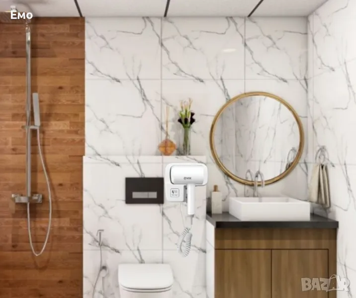Сешоар, 1600W, стенен, 2 скорости, 1.8 м кабел