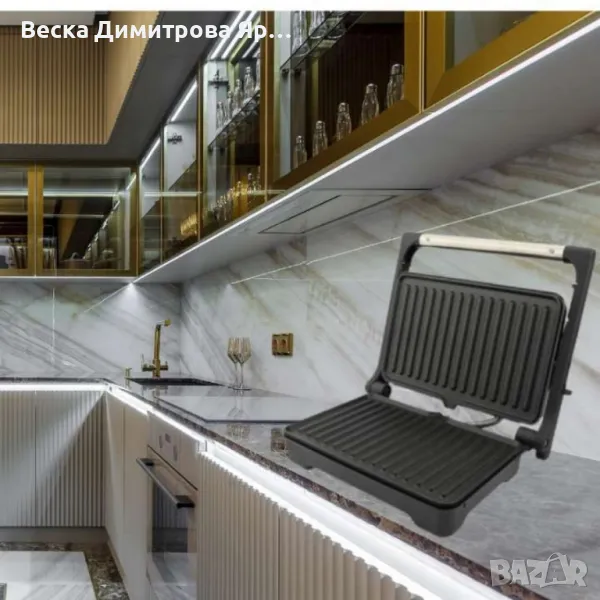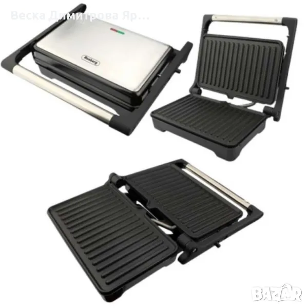 Тостер преса с две плочи Не нагряваща се ръкохватка. Не залепващо покритие за лесно почистване. Защита срещу прегряване. Плаваща система с панти за лесно приготвяне. Капакът се отваря на 180° градуса. Тавичка за събиране на събралата се мазнина. Светлинен индикатор за включване и готовност. Не плъзгащи се крачета. Размер на плочата: 23*14.5cm. Захранващо напрежение: 220-240V~,