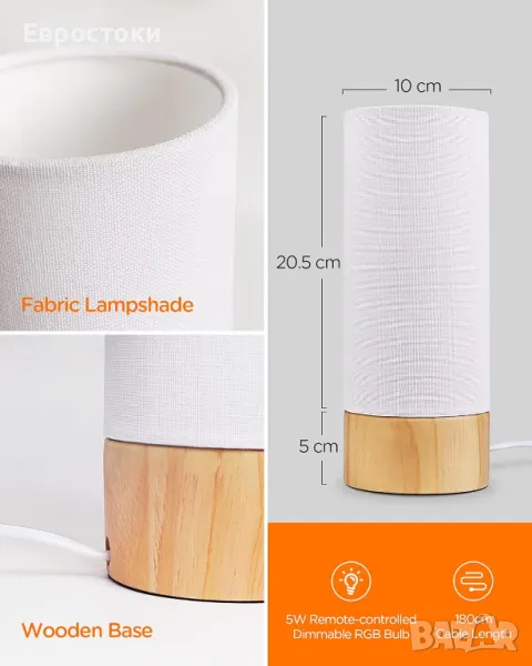 Tomons Димируема RGB настолна лампа в скандинавски стил с дистанционно управление и крушка с текстил
