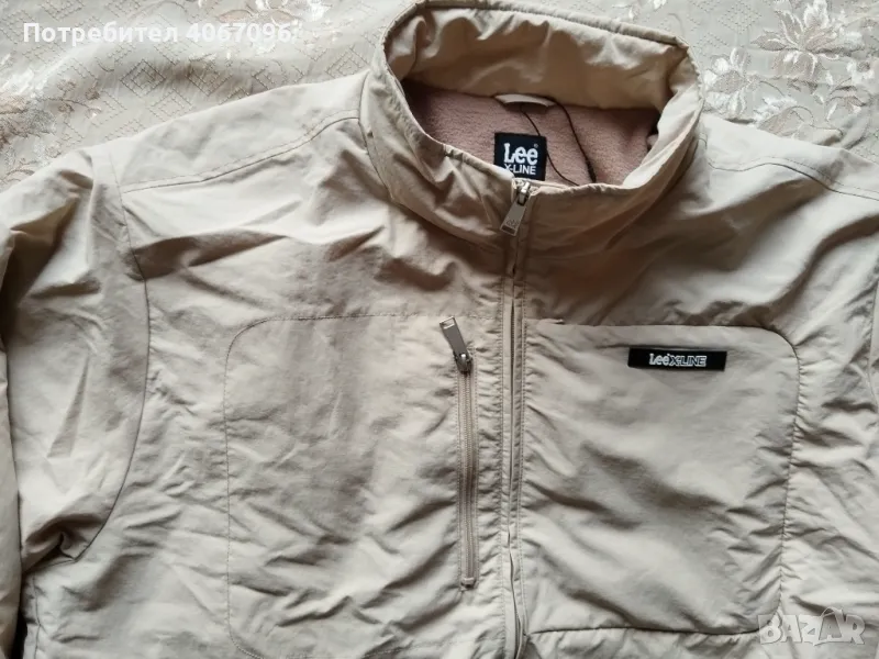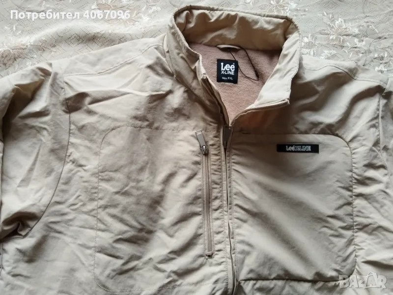 Мъжко яке Lee серия X-LINE - размер XXL. Цвят - светло бежов, зимно. Материя - 100% полиестер - подплата полар. 4 външни джоба. Закопчаване - цип. Размери: рамо - 60 см., подмишници - 74 см., височина (гръб - до яката) - 74 см., ръкав външно - 70 см., ръкав вътр. - 56 см. Състояние - НОВО (липсва етекета). Цена - 40 евро (не подлежи на коментар).