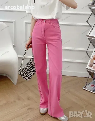 Дамски улични широки дънки с висока талия и прави крачоли, 2цвята