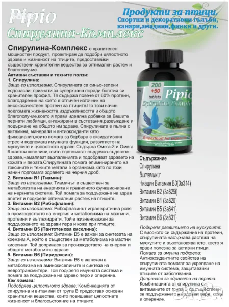 Pipio Spirulina-Complex за птици
