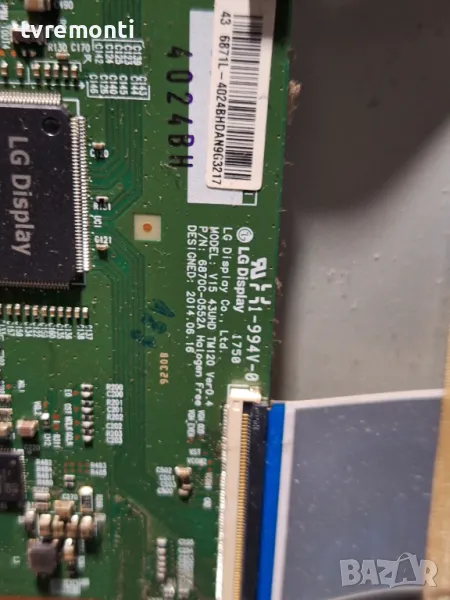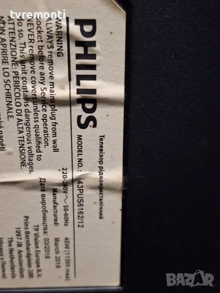T-CON 6870C-0552A 6871L-4024B for, PHILIPS 43PUS6162/12 DISPLAY TPT430U3-EQYSHM.G rev.S1AP борда е гарантирано работещ Демонтиран от телевизор PHILIPS модел 43PUS6162/12 със счупен дисплей TPT430U3-EQYSHM.G rev.S1AP тествана от нашия техник Ремонт на всички марки съвременни телевизори