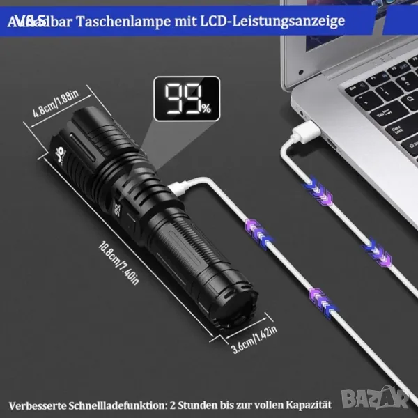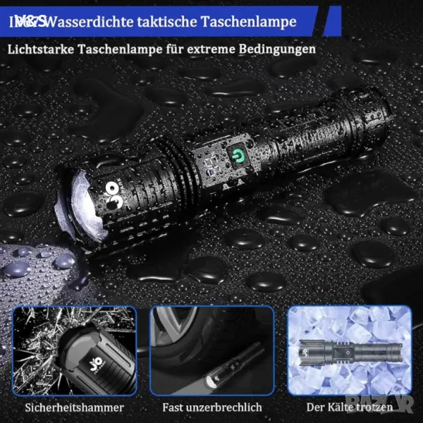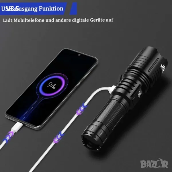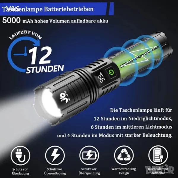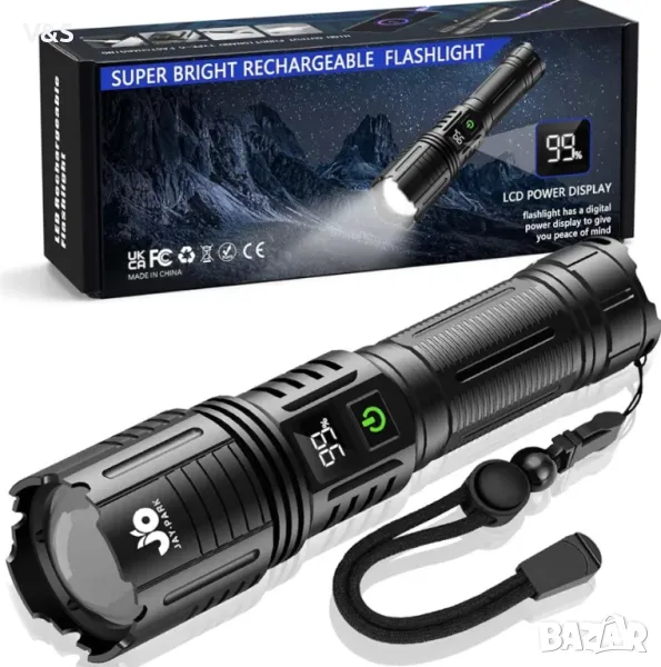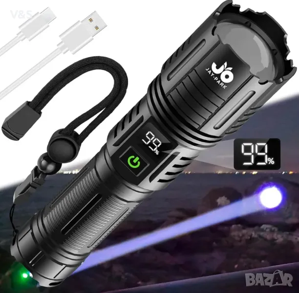 Светодиодно фенерче JAY-PARK, акумулаторно 100 000 лумена, изключително ярки тактически фенерчета с