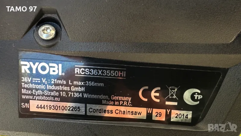 Марка и модел: Ryobi RCS36X3550Hi