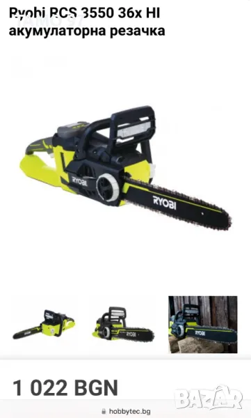 Продавам мощна акумулаторна резачка за дърва на Ryobi в перфектно визуално състояние, както се вижда на снимките също така работи брилянтно, внос от Франция. Обявената цена е за машината с една батерия 36V 5.0Ah с индикатор и зарядно устройство, при желание на клиента може и по отделно резачката 330лв. батерия 160лв и зарядно 90лв. Пращаме с опция преглед и тест с куриерска фирма еконт може и лично предаване за гр. Шумен. Магазинската цена е: 1 026лв.