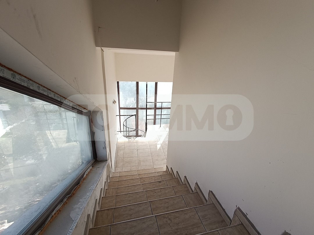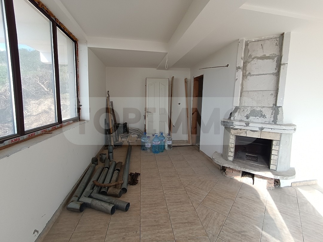 Втори етаж всекидневна - холна част с камина, тоалетна, склад с перално помещение.