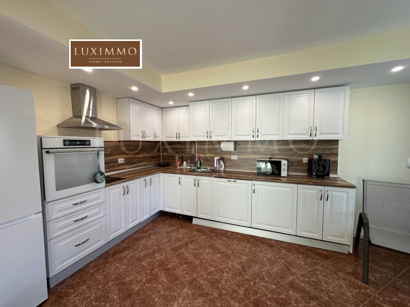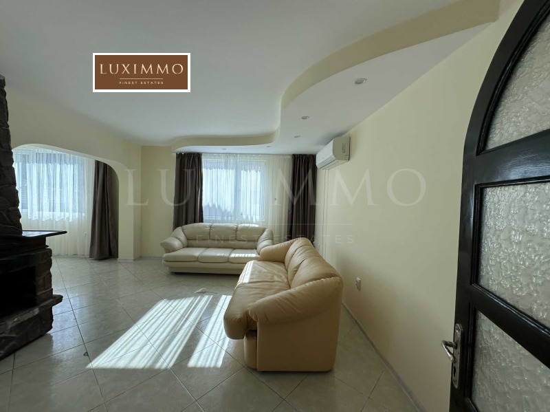 На първия етаж ви посреща светла и просторна всекидневна зона с кухня и трапезария, обединени около уютна камина. Голямата тераса към етажа предлага място за релаксация и панорамна гледка към зеленината наоколо. Вътрешното стълбище води към втория етаж, където са разположени трите спални, още една баня с тоалетна и голяма тераса.