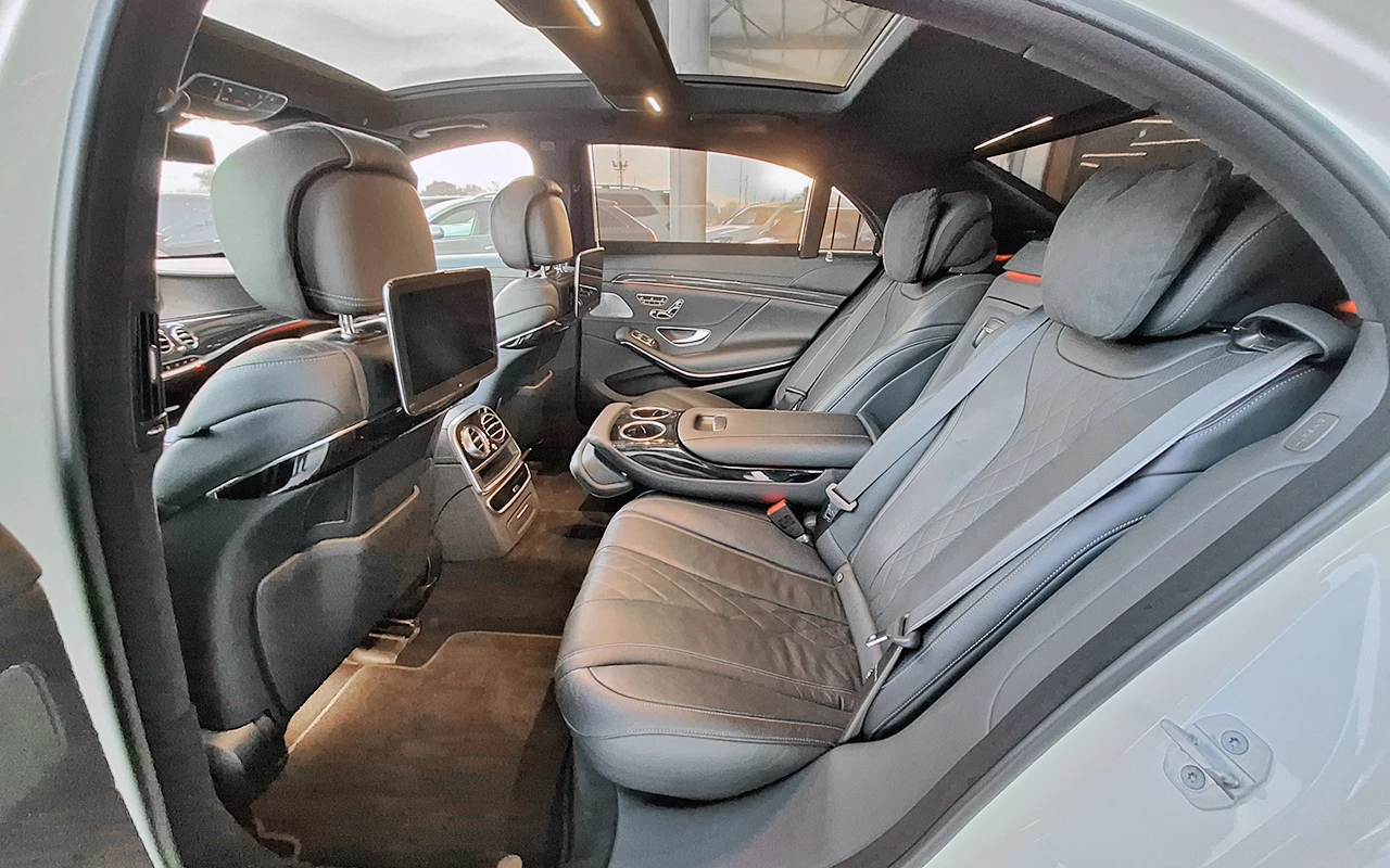 Цена без начислен 20% ДДС! Пълна сервизна история! Възможен лизинг! Възможен бартер! 501 - Тапицерия естествена кожа напа Exclusive, черна 08U - Подготовка за Vehicle Setup 09U - Подготовка за Vehicle Monitoring 20R - Алуминиеви джанти 20 (50, 8 см), дизайн 5 двойни спици 223 - Ел. регулируеми външни задни седалки вкл. функция Мемори 228 - Независимо стационарно отопление/вентилация 231 - Дистанционно управление на гаражна врата, интегрирано във вътрешното огледало за обратно виждане 23P - Пакет Асистиращи системи PLUS -активен пилот за дистанция DISTRONIC -активен кормилен асистент -активен асистент за ограничението на скоростта -активен спирачен асистент с функция за кръстовища -активен асистент за мъртва зона -активен асистент за лентата за движение -адаптиране на скоростта в зависимост от отсечката на база информация от навигационната система -PRE-SAFE PLUS (система за предвиждане на опасност от удар в задната част на автомобила вкл. предприемане на превантивни дейности по защита на седящите в купето и избягване на вторични последствия) -кормилен асистент при избягваща маневра -активен асистент за смяна на пътната лента -аварийно спиране в задръстване (при заети съседни ленти) -автоматично деактивиране на фронталната въздушна възглавница за пътника до водача (U10) 260 - Без моделен надпис на задния капак 293 - Въздушни възглавници на нивото на вратите за задните места 306 - Коланна въздушна възглавница за външните задни места 401 - Климатизирани предни седалки (отопление и вентилация) 402 - Климатизирани задни седалки (отопление и вентилация) 413 - Панорамен електрически люк 432 - Пакет Комфортни предни седалки -динамични активни мултиконтурни предни седалки с ENERGIZING масажна функция -лумбални опори -пакет Отопление на предните седалки PLUS 439 - Комфортни подглавници за предните места с функция EASY ADJUST 453 - EXECUTIVE седалка -задна дясна седалка с опора за краката и увеличен ъгъл на лягане до 43, 5 463 - Head-up Display 537 - Цифров радио тунер (DAB) 596 - Тонирани многослойни шумоподтискащи стъкла с инфрачервен филтър 597 - Отопляемо челно стъкло 61U - Таван в designo микрофазер DINAMICA, черен 735 - Декоративни елементи, разширен обхват 810 - Озвучителна система Burmester Surround Sound 840 - Подсилено затъмнени задно и странични задни стъкла 871 - HANDS FREE ACCESS 874 - Адаптивни чистачки MAGIC VISION CONTROL, отопляеми 883 - Сервозатваряне на вратите и капака на багажника 891 - Амбиентно интериорно осветление в 64 цвята и 10 цветови шаблона 899 - Мултифункционална телефония -безжична връзка към външната антена на автомобила (LTE съвместима) -повърхност за безжично зареждане на QI-съвместими мобилни устройства с диагонал на екрана до 15, 2 см (6 ) -бързо свързване на мобилни телефон към мултимедийната система посредством NFC идентификация 902 - Пакет Отопление PLUS за предните места 903 - Пакет Отопление PLUS за външните задни места B24 - Дистанционно управление за независимото стационарно отопление/вентилация H10 - Декоративни елементи AMG Carbon/черен пиано лак R51 - Алуминиеви джанти 20 (50, 8 см), дизайн 10 двойни спици L2D - Мултифункционален волан в изпълнение кожа напа / дърво P07 - Пакет Шофьор -позиция Шофьор за седалката до водача (452) -комфортни подглавници за предните места с функция EASY ADJUST вкл. възможност за сгъване и изваждане на подлгавника на седалката до водача (439) -електрическа опора за краката (само при L-моделите) P09 - Пакет Щори -ел. щори на стъклата на задните врати (297) -ел. щора на задното стък