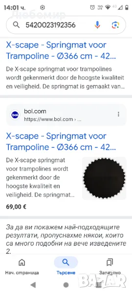 Подложка за скачане на Батут - Ø366 см - 42 пружини - +3г