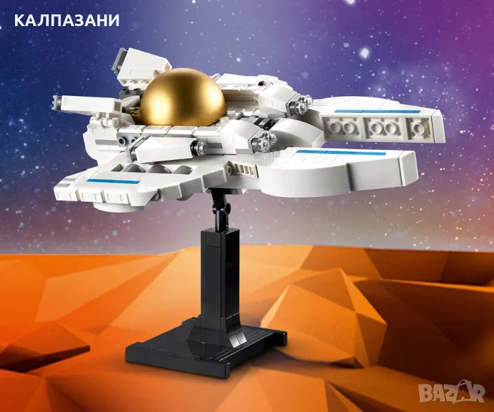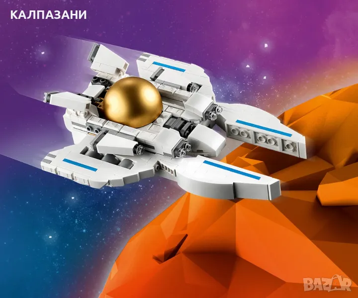 - Модели за показване – 3-те космически модела LEGO® се доставят със стойки от тухлички, така че децата да могат да ги показват в стаите си, след като се насладят на приключенията и играта