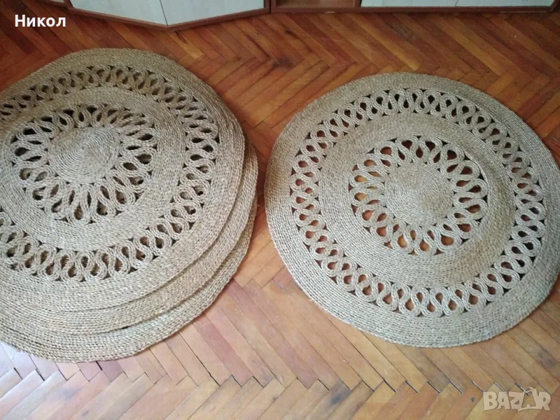 Нови руски плетени подови рогозки диаметър 90 см,никога не са ползвани/40 годишни са/налични 4 броя цената от 100 лева е за брой при интерес пишете
