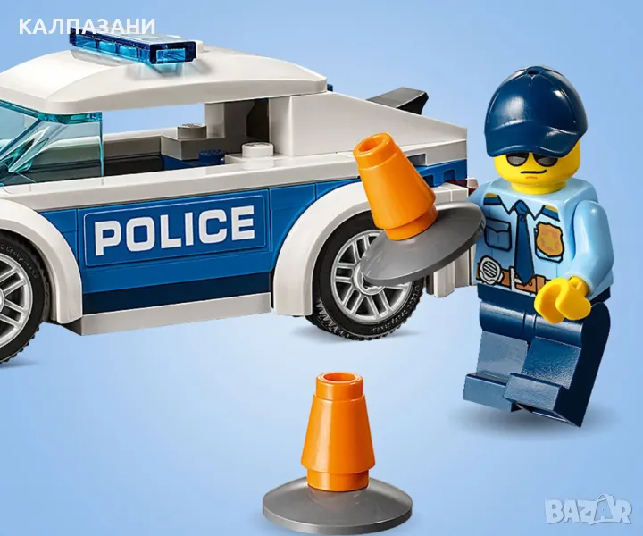 Запалете мощния двигател на полицейската патрулна кола и защитете града. Изглежда полицаят има нужда от помощ за регулирането на движението. Поставете пътните конуси и станете герой на ежедневието със силите на полицията в LEGO® City.