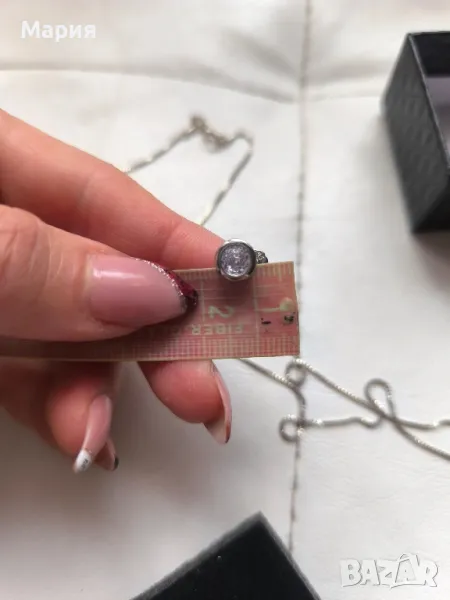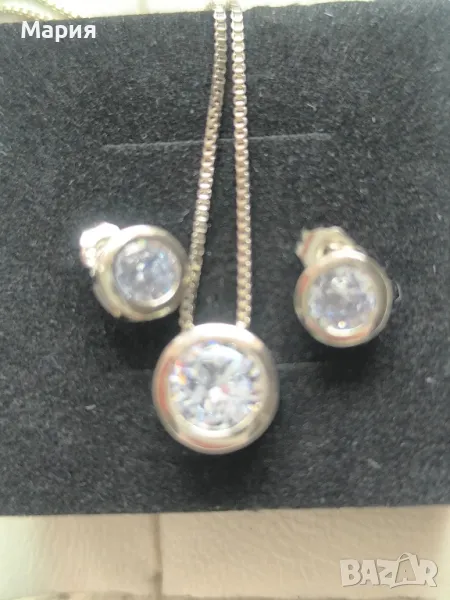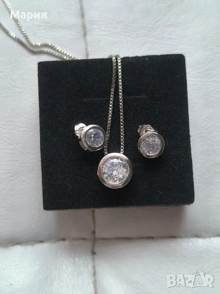 нежен сребърен комплект - синджир, обеци, висулка с цирконий . Печат 925