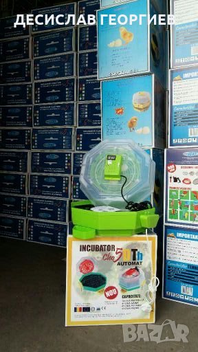 Продавам инкубатори, нови,заводски, директен вносител ,за люпене на (кокоши, пуйчи, гъши, патешки,яребици,фазани, пъдпъдъчи,щраус,птица ему) и др. яйца, полуавтоматични(автоматични) тип люлка. броят на яйцата за люпене зависи от вида на птицата.Въртенето на яйцата на полуавтоматичните става с помощта на ключ, който завърта едновременно всички гнезда под наклон от 45*,2-3 пъти на ден!Температурата се постига автоматично(заводско) до 37.2 – 38.2градуса. Има възможност и за ръчно регулиране на температурата!!! Допълнително към инкубатора могат да се поръчат и приставки за пъдпъдъци(25 лв)