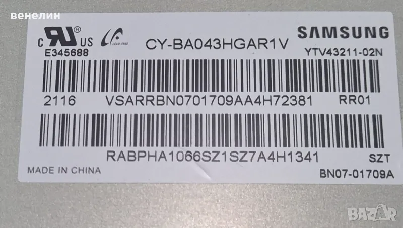Частите са свалени от телевизор със счупена матрица SAMSUNG UE43AU7172