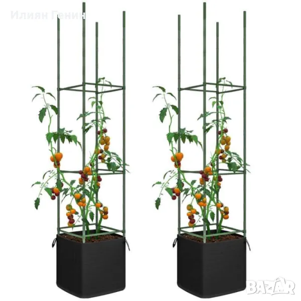 Сигурна опора: пакет от 2 решетки с джобове за почва за саксии. Идеален за домати, краставици и др. Чантите осигуряват гъвкавост, за да преместите вашите растения без усилие