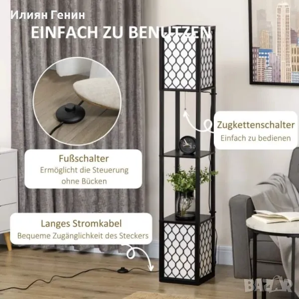 Лесен за използване: Превключвателят е на веригата на абажура. Снабден с дълъг захранващ кабел за удобен достъп до контакта.