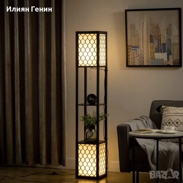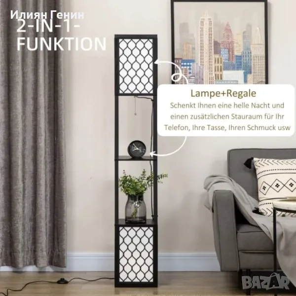 Информация: Габаритни размери: 26L x 26W x 156H cm, Размер на рафта: 26L x 26W x 39H cm. Капацитет на тегло: (всеки рафт) 2 кг. Всяка изисква крушка, съвместима с E27 40W крушки (крушката не е включена), като халогенни крушки, LED крушки и др. Изисква се прост монтаж.