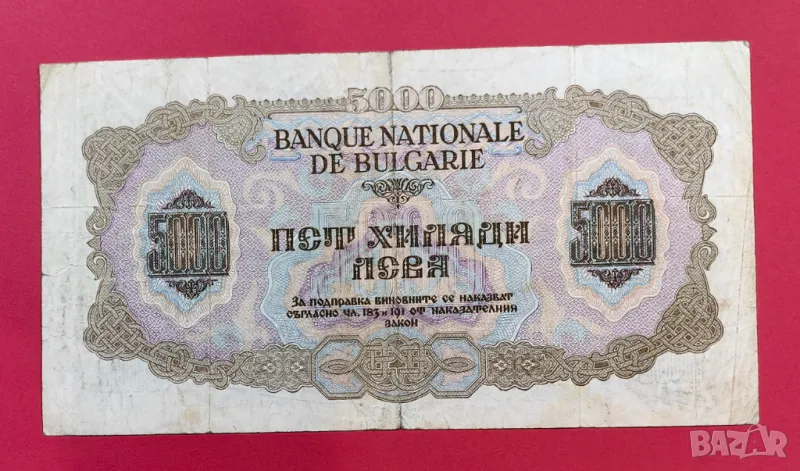 5000 лева 1945 година България #2, снимка 1 - Нумизматика и бонистика - 47778346 5000 лева 1945 година България #2, снимка 2 - Нумизматика и бонистика - 47778346 1/2