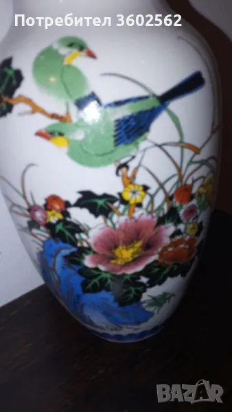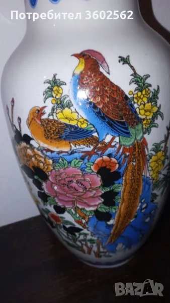 прекрасна, ръчно рисувана азиатска порцеланова ваза с две лица-сойки и райски птици.
