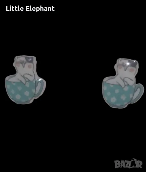 Обеци"Happy cats in cups"blue,колекция"Animals"/нови → Обява 47780409