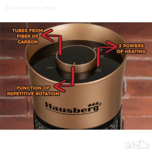 Електрически радиатор Hausberg HB-8750AU въглеродни влакна, 900 W, 2 степени на мощност, външно/вътрешно, Златен