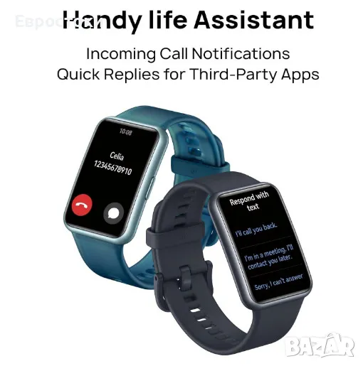 Общувайте възможно най-удобно. Специалното издание на HUAWEI WATCH FIT поддържа известия за входящи обаждания и затваряния, както и бързи отговори за съобщения. Насладете се на безпроблемна комуникация само с едно движение на китката.