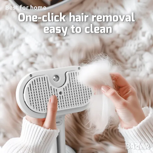 【Функция за самопочистване】 Парната четка за котки има бутон за освобождаване с едно докосване. След разресване леко натиснете бутона за премахване на космите, за да почистите лесно космите върху гребена. По-преносим и по-прост.