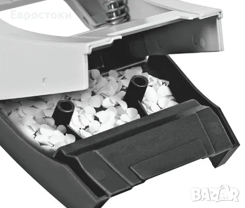Спестяване на място – идеален размер за почти всяко чекмедже. Безопасно използване благодарение на скрития перфоратор и лесно изпразване с помощта на шарнирната кутия за отпадъци.