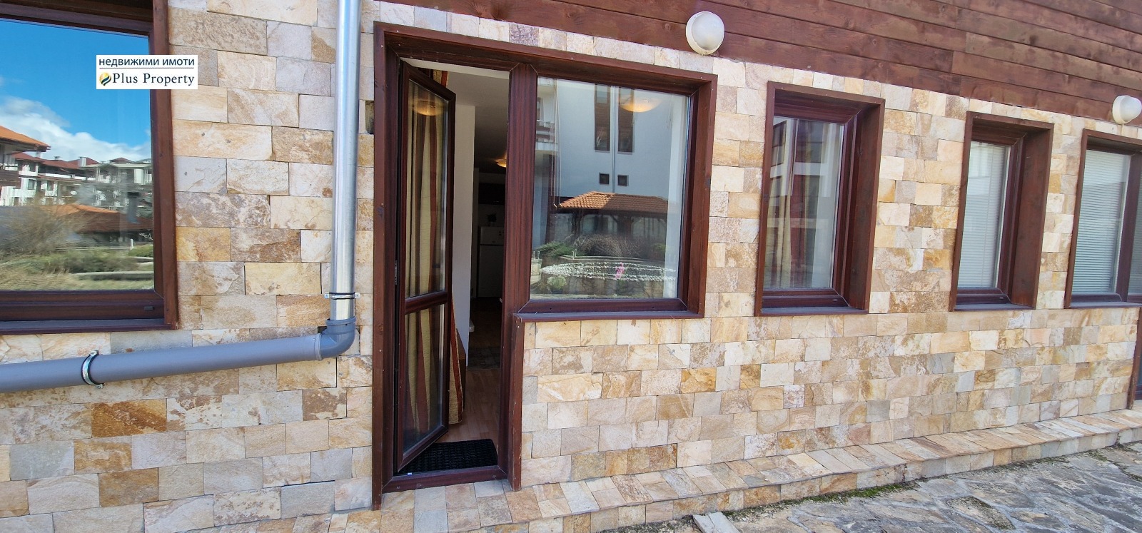 Първото ниво се състои от просторно входно антре с дървена стълба към второто ниво, дневна/трапезария с кухненски бокс, оборудван с керамичен котлон и хладилник, маса за хранене, диван и камина. Има достъп до вътрешния двор на комплекса. Основната спалня е обзаведена с двойно легло, нощни шкафчета и бюро. Банята е оборудвана с вана, тоалетна, мивка и бойлер.