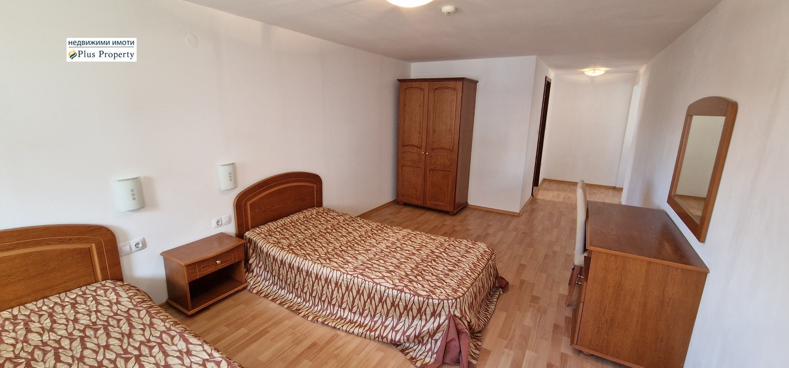 На второто ниво има просторна спалня, обзаведена с две единични легла, нощни шкафчета, бюро и гардероб и втора баня с мивка, тоалетна и вана.
