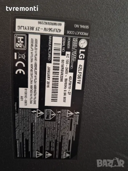 POWER SUPPLY EAX66203001(1.6) for LG 42LF561V DISPLAY LC420DUE-MGA4 борда е гарантирано работещ Демонтиран от телевизор LG модел 42LF561V със счупен дисплей LC420DUE-MGA4 тествана от нашия техник Ремонт на всички марки съвременни телевизори