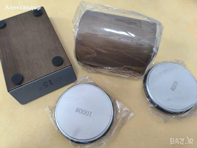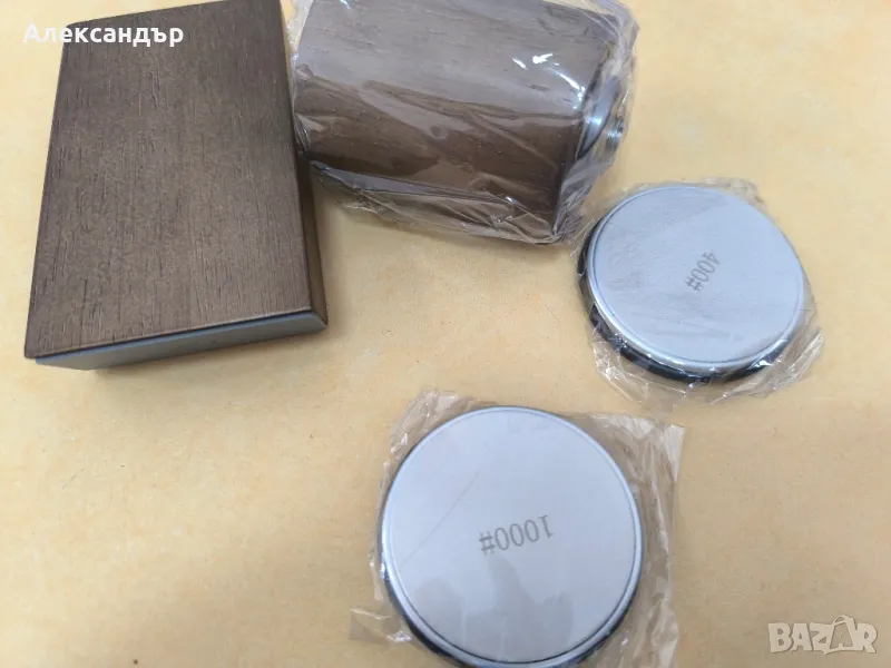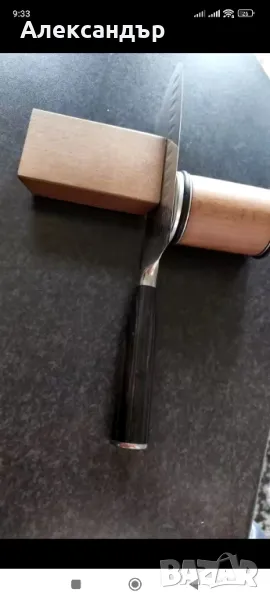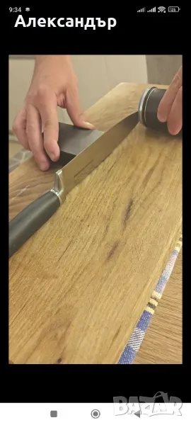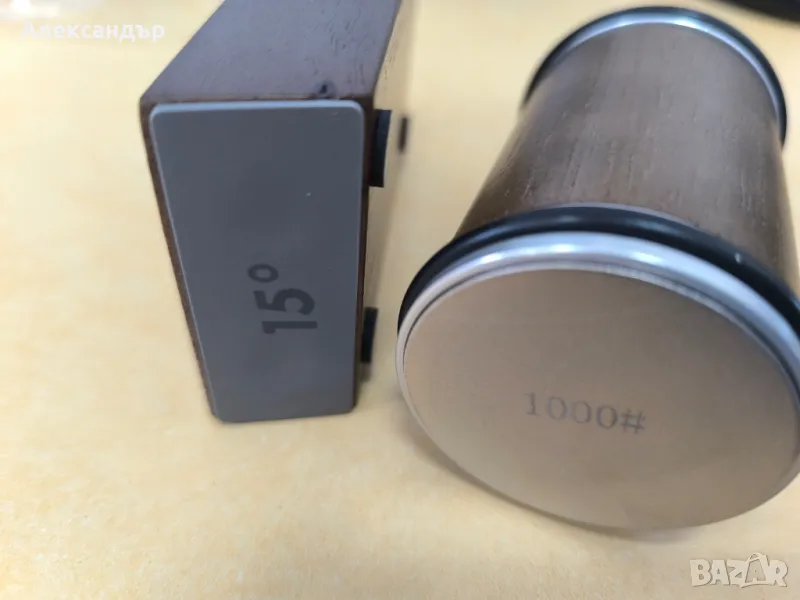 лесна за употреба система за заточване на Край на тъпите ножове заточването никога не е било по лесно.. дървената основа с магнити от едната страна 15градуса от другата 20градуса залепя ножа с острието на горе. Цилиндър с диамантени пластини от едната страна 400 и от другата 1000грит посредством умерен натиск се движи напред и назад по дължината на острието на ножа и.. това е ножа е отново остър и готов за употреба. Разгледайте и другите ми обяви.