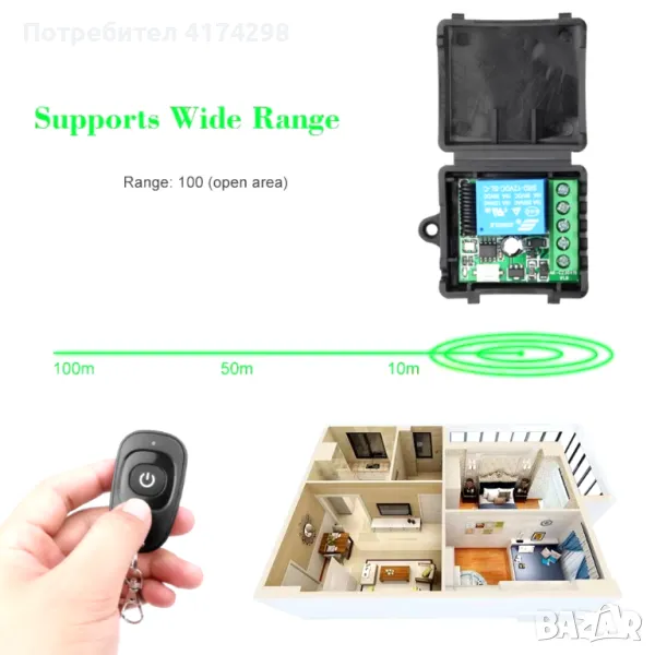 Дистанционен режим на работа: Моментен режим / Режим на превключване / Режим на заключване / Режим на забавяне на времето (5 секунди, 10 секунди, 15 секунди)