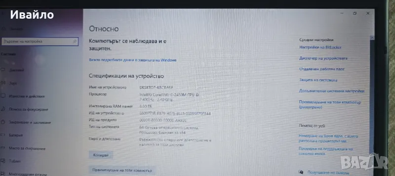 БАТЕРИЯ НАД 1,30 ЧАСА,WIN 10 PRO