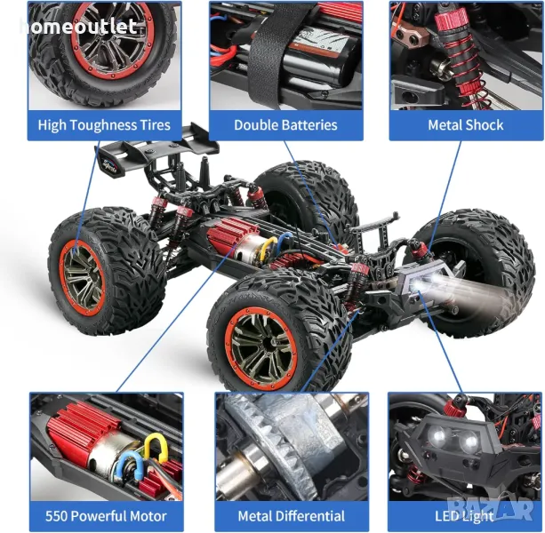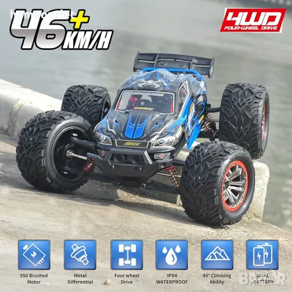 Включен е 2,4 GHz изпращач с обхват до 80 м/262 фута, силно реагиращо управление и газ.