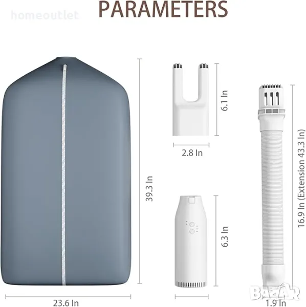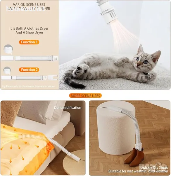 Оборудван с високоефективен мотор и голям капацитет, този портативен уред може бързо да изсуши пълен товар дрехи, спестявайки ви ценно време и енергия.