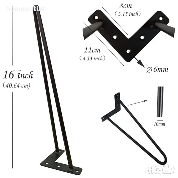 Комплект от 4 броя крака за маса тип фиба, подходящи за изработка на бюра, маси, пейки и др.. Отличават се с класически индустриален стил, който придава модерна атмосфера на декорацията на стаята.