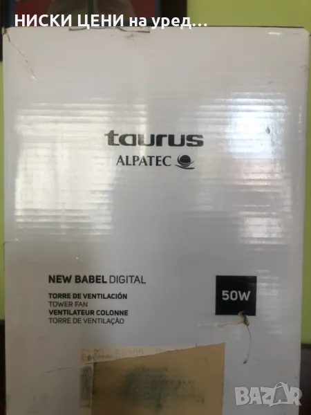 Taurus Alpatec New Babel Digital Tower Fan е съвременен вентилатор с мощност от 50W и три нива на скорост – нормален, природен и нощен режим, които позволяват регулиране на охлаждането според нуждите. Вентилаторът има 9-часов таймер, който автоматично го изключва, спестявайки енергия. Допълнително е оборудван с функция за осцилация, която осигурява равномерно разпределение на въздуха в помещението. Дигиталният дисплей показва температурата в стаята и позволява регулиране на яркостта, а дистанционното управление добавя удобство. Вентилаторът е с височина 76 см и ниво на шум от около 55 dB, което го прави относително тих. Има стабилна, противоплъзгаща се основа и дръжка за лесно пренасяне.