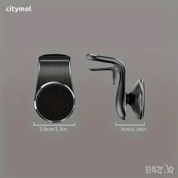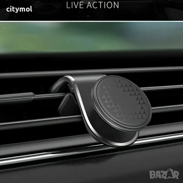 360 градусовата поставка за телефон е предназначена на монтаж на въздуховодите в автомобила. Универсална е, което я прави съвместима с различни смартфони и таблети. Изработена е от алуминий и каучук, а 4-те силни магнита са със силен захват. Качеството на материали и изработка е най-високо.