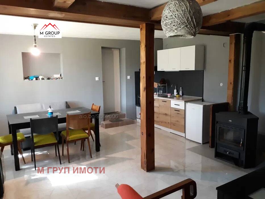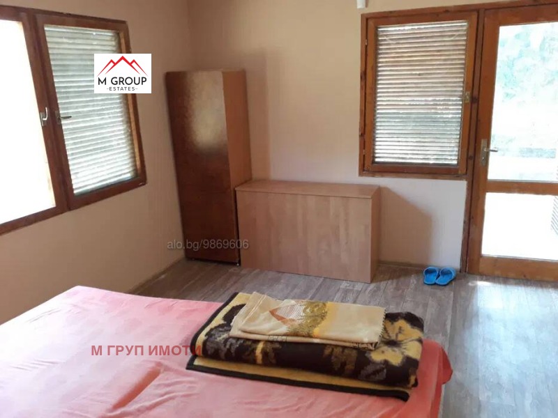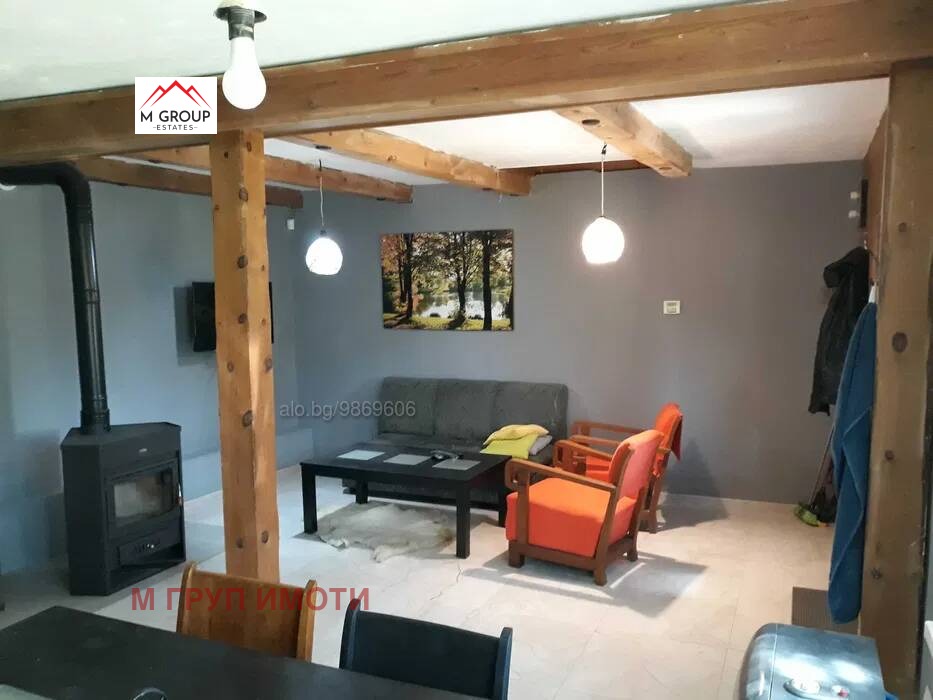 М ГРУП ИМОТИ Ви предлага къща в Родопското село Малево само на 50км. от град Пловдив и 35км. от Пампорово. Къщата е на два етажа с РЗП 120кв.м., тухлена, построена през 2000г. Направен и е основен ремонт. Първият етаж се състои от хол с всегидневна и кухня, едно цяло пространство 50кв.м и баня с тоалетна. По външни стълби се стига до втория етаж в който са разположени три спални. Обзаведена е с нови мебели и електро уреди. Първият етаж се отоплява с камина на дърва, като във всяка стая има радиатори. Пред къщата има голяма веранда. Има и допълнителни постройки като голямо избено помещение с отделна врата и гараж за две коли. Първият етаж на къщата е от тухли и бетон, а втория от термопанели и е с ламаринен покрив. До нея се стига по хубав асфалтов и павиран път.